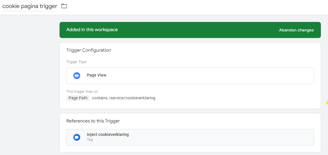 Then you create a trigger that goes off the moment the user has loaded the cookie statement page.