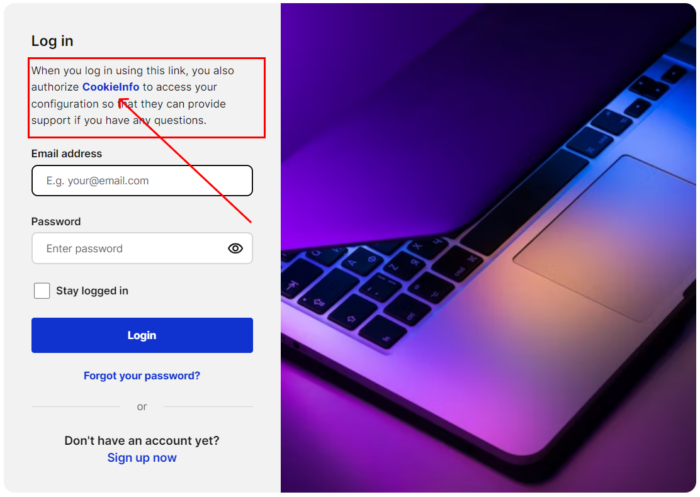 Volg de instructies op deze pagina (de instellingen en prijzen van je Cookiebot abonnement blijven behouden*) om je Cookiebot account te koppelen aan CookieInfo . We helpen je vervolgens met Cookiebot Nederlands support vragen over implementatie-, voorafgaande toestemming- of custom banner-vragen. Op verzoek kunnen we ook meekijken in de set-up in jouw back-end. Ook voor andere cookie gerelateerde vragen kan je ons dan mailen of bellen.